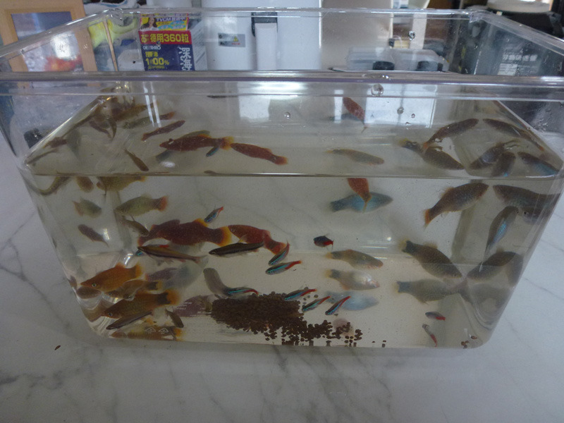 プラティーたちをみんな小さな水槽に移します。