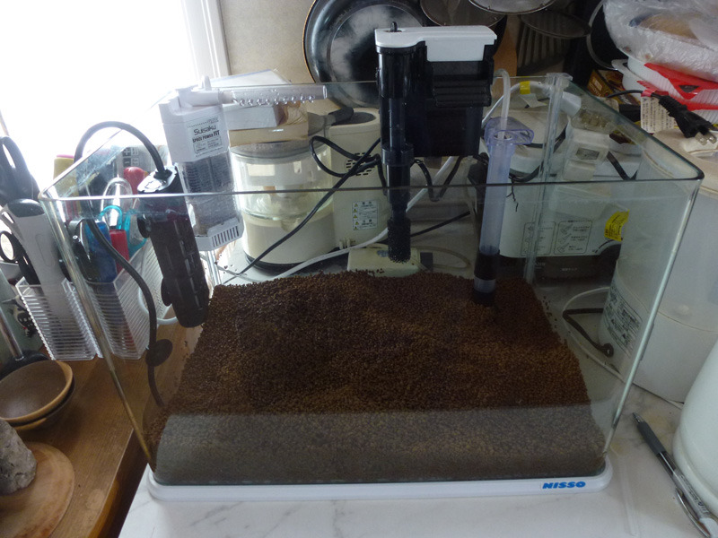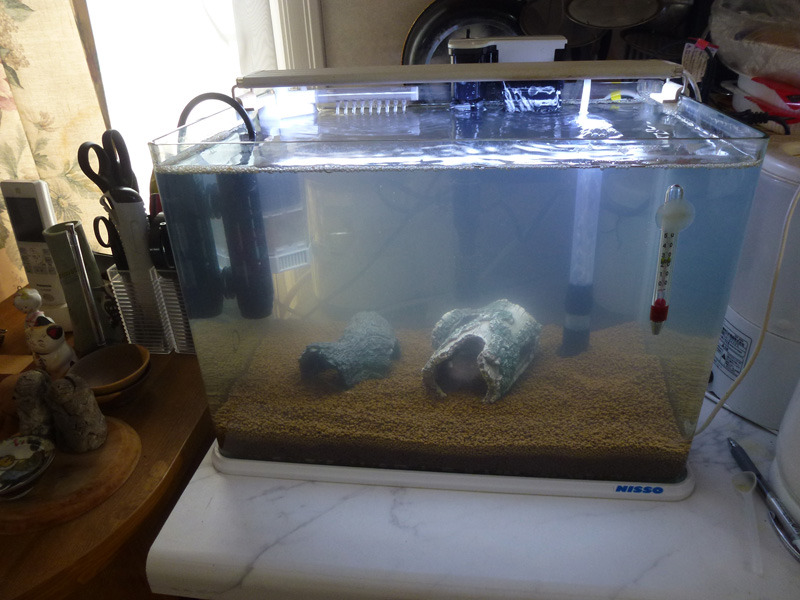 水を入れて水温と水質調整しました。