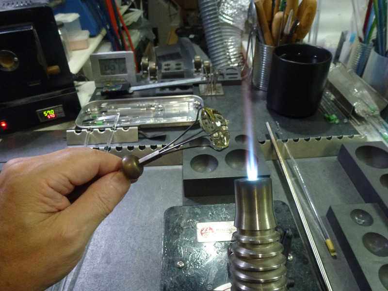 ポンテ棒を外し電気炉に入れて徐冷します。