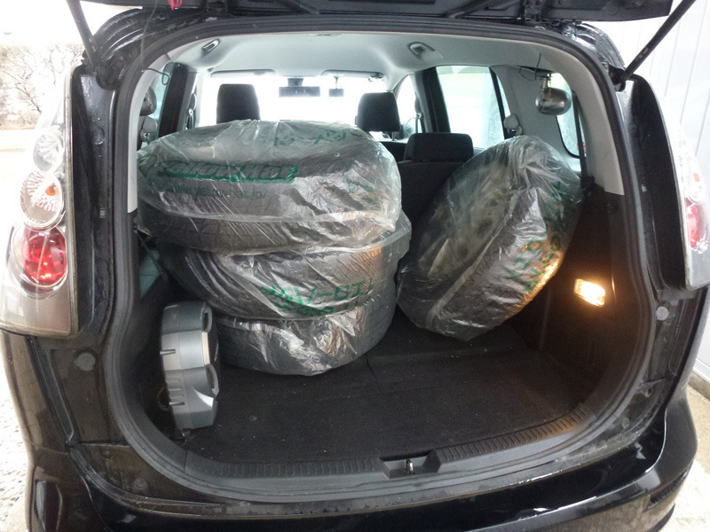 倉庫にしまっていたスタッドレスタイヤを積んで、