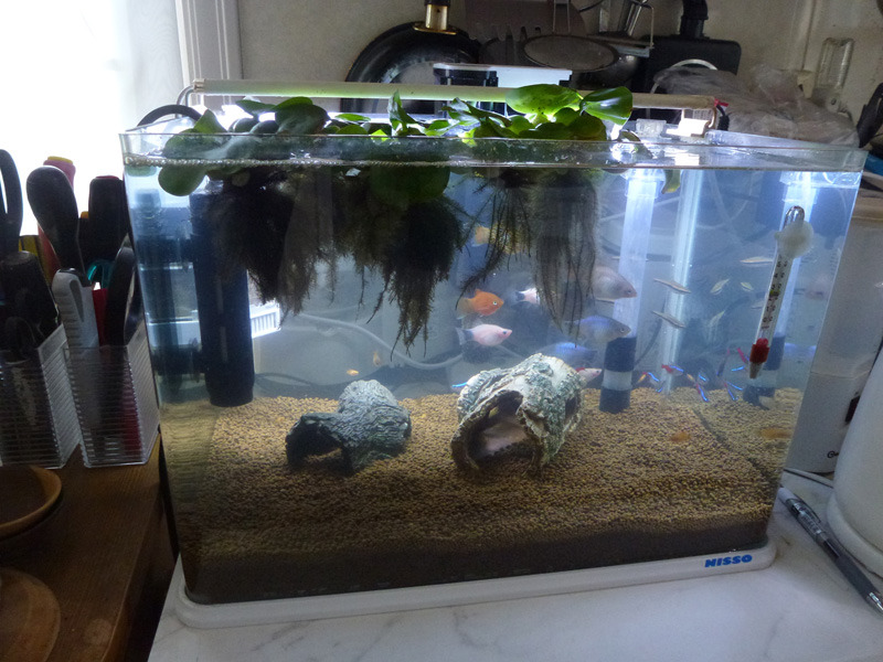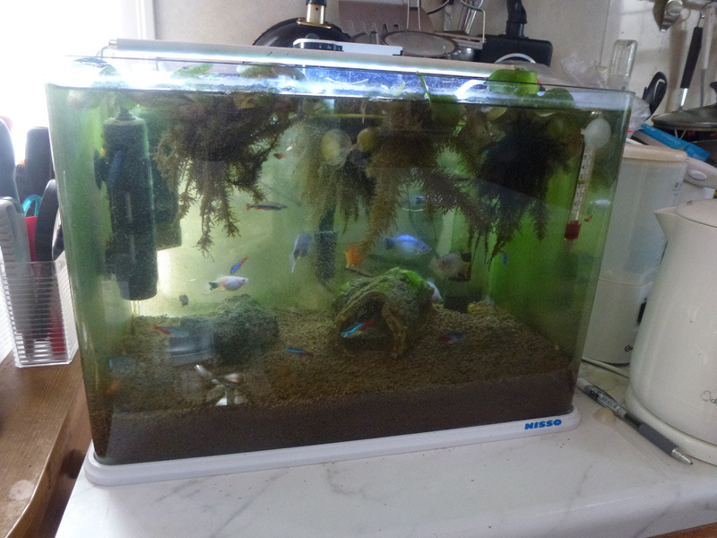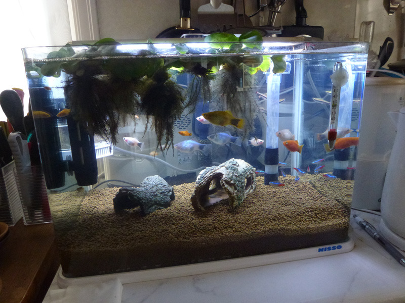 プラティーたちの水槽がだいぶ汚れてきました。