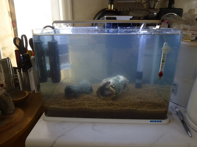 水を入れて水温と水質調整しました。