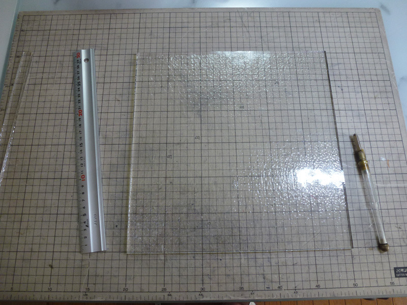 ソーダガラスペンのベースになるクリアーの板ガラスです。